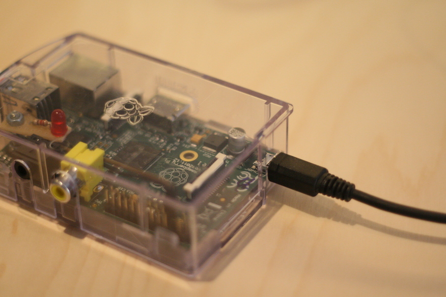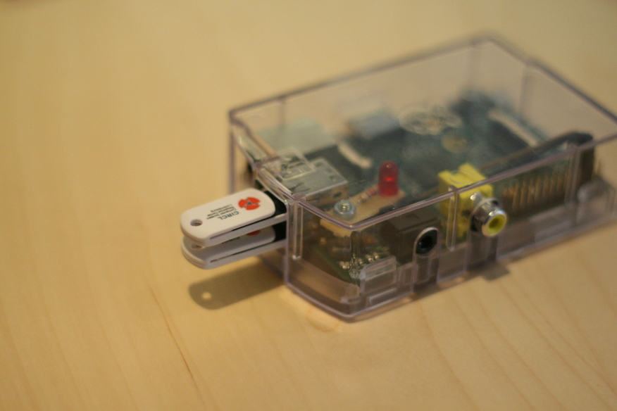 Plug the untrusted key in the top usb slot of the Raspberry Pi: